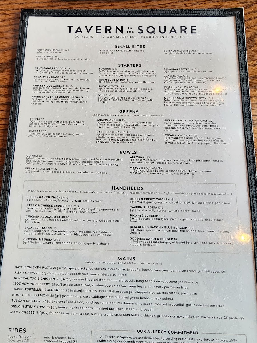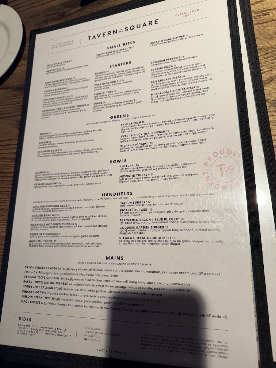 Welcome to Tavern in The Square - East Greenwich, a culinary gem nestled at 1000 Division St, East Greenwich, RI. This vibrant eatery harmonizes trendy vibes with a comfortable atmosphere, perfect for gatherings both large and small. The menu is a delightful journey through flavors, beginning with enticing small bites like Buffalo Cauliflower and Fried Pickle Chips. For heartier options, indulge in the savory Sirloin Steak Tips or the creamy Grilled Chicken Mac N Cheese, showcasing an expert blend of cheeses.